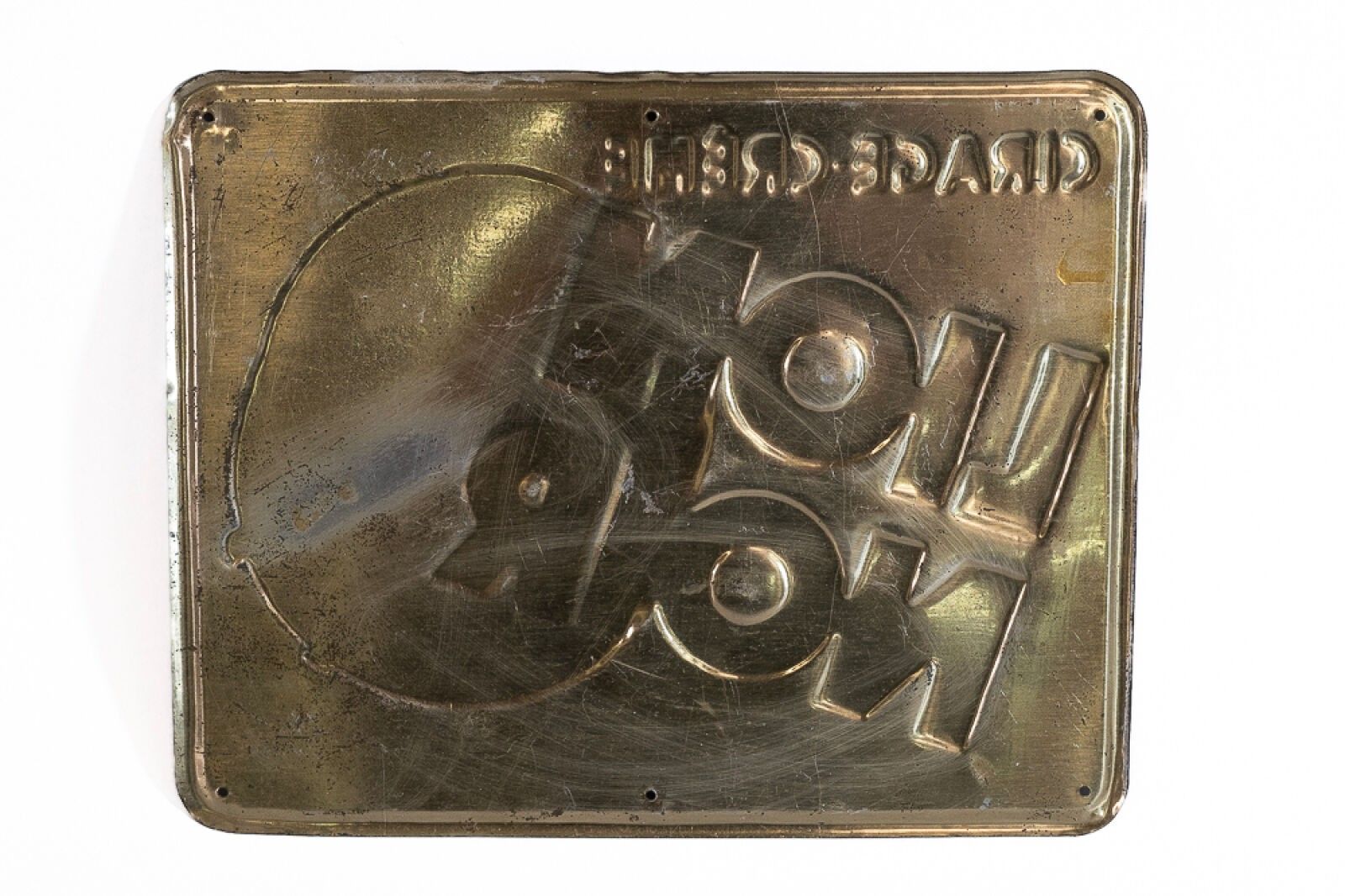 Tôle lithographiée vers 1930 « d'après Coulon » en très bel état, lettrage embossé.