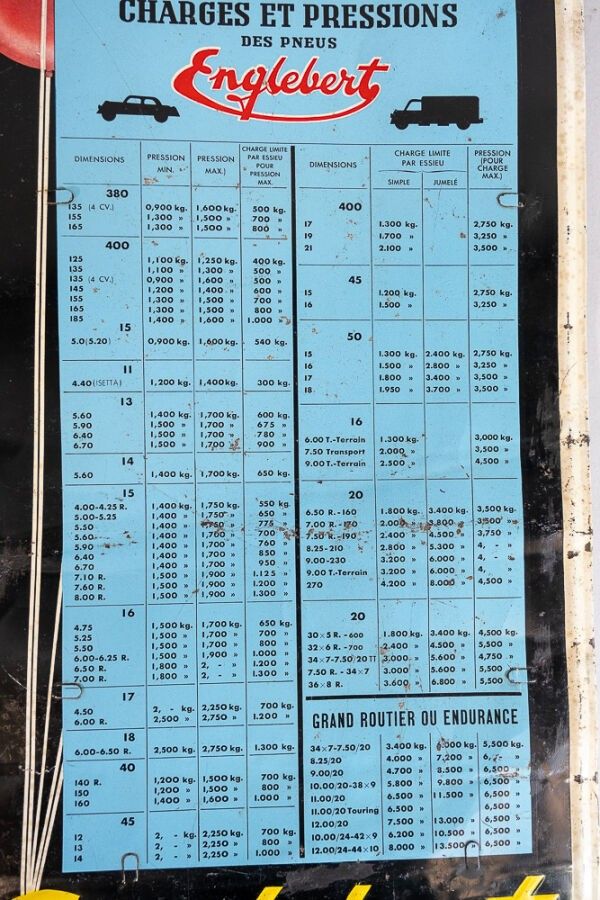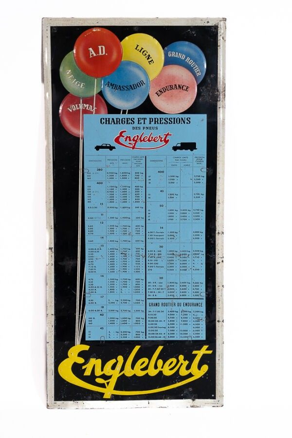 ENGLEBERT - « charges et pressions des pneus » Tôle lithogra…