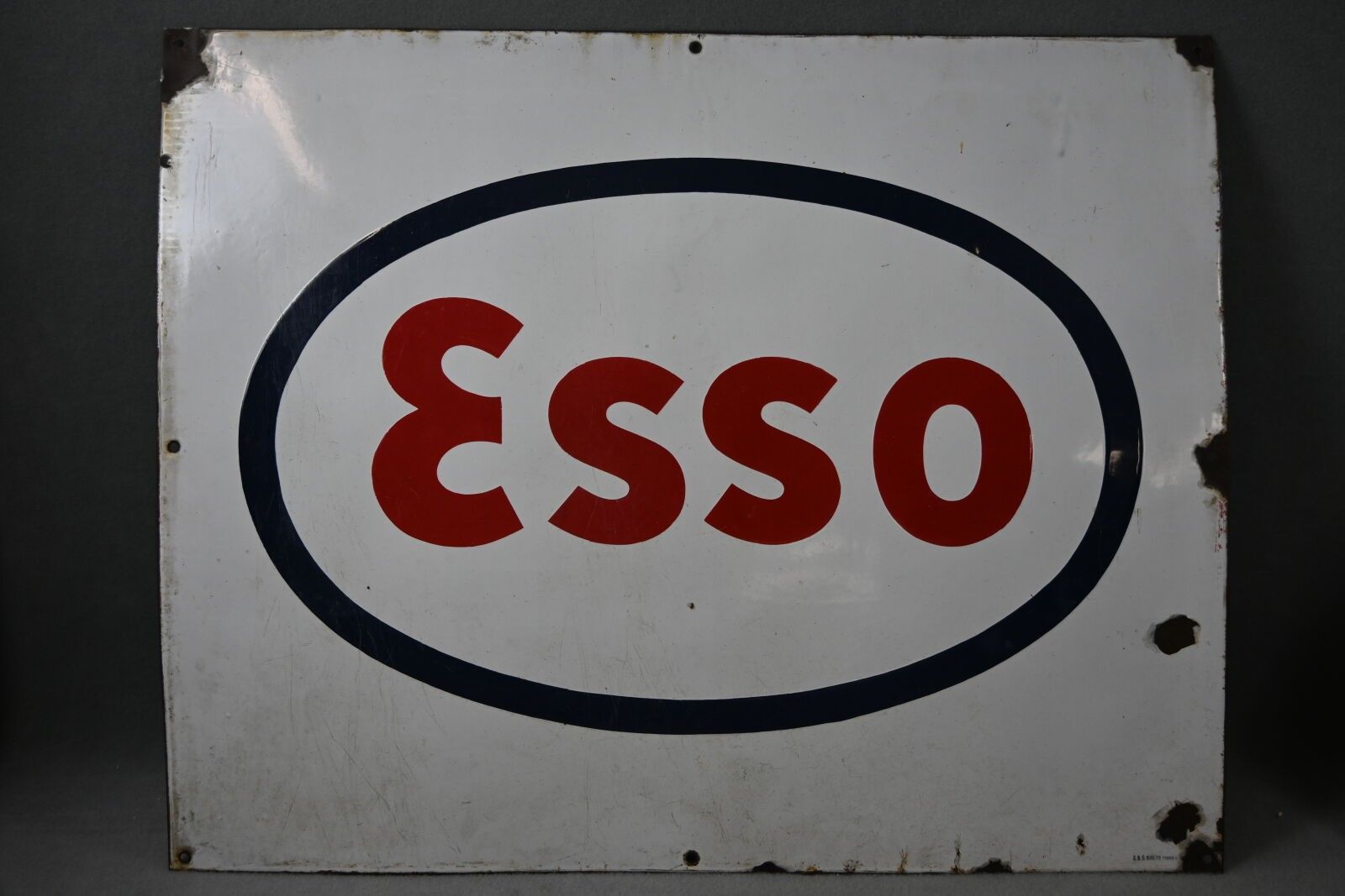 ESSO, Plaque publicitaire en tôle émaillée de forme rectangu…
