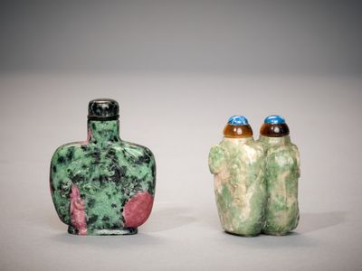 CHINE, XIXe siècle Deux petites tabatières, l’une en jadéite…