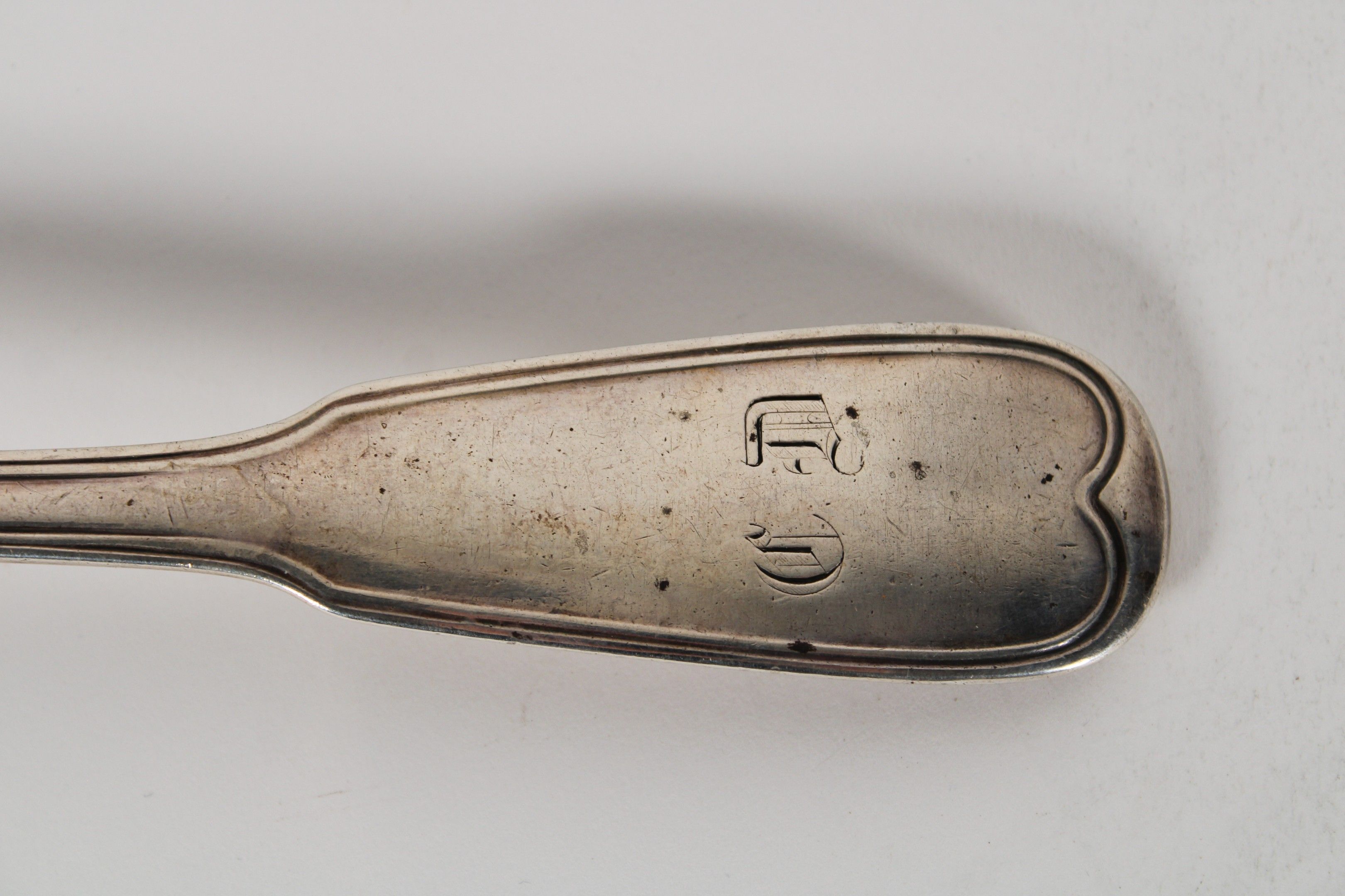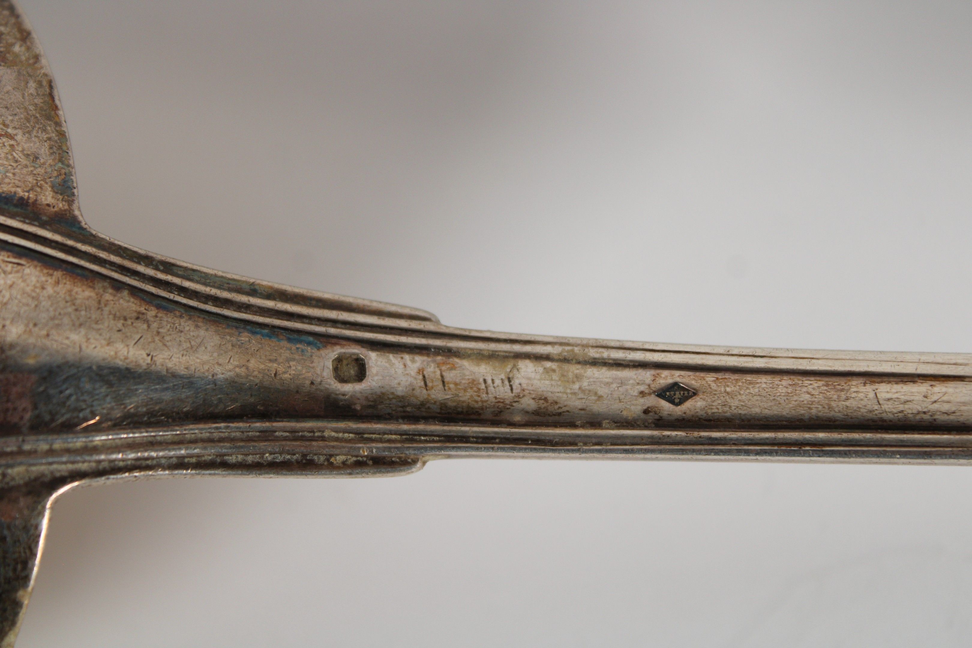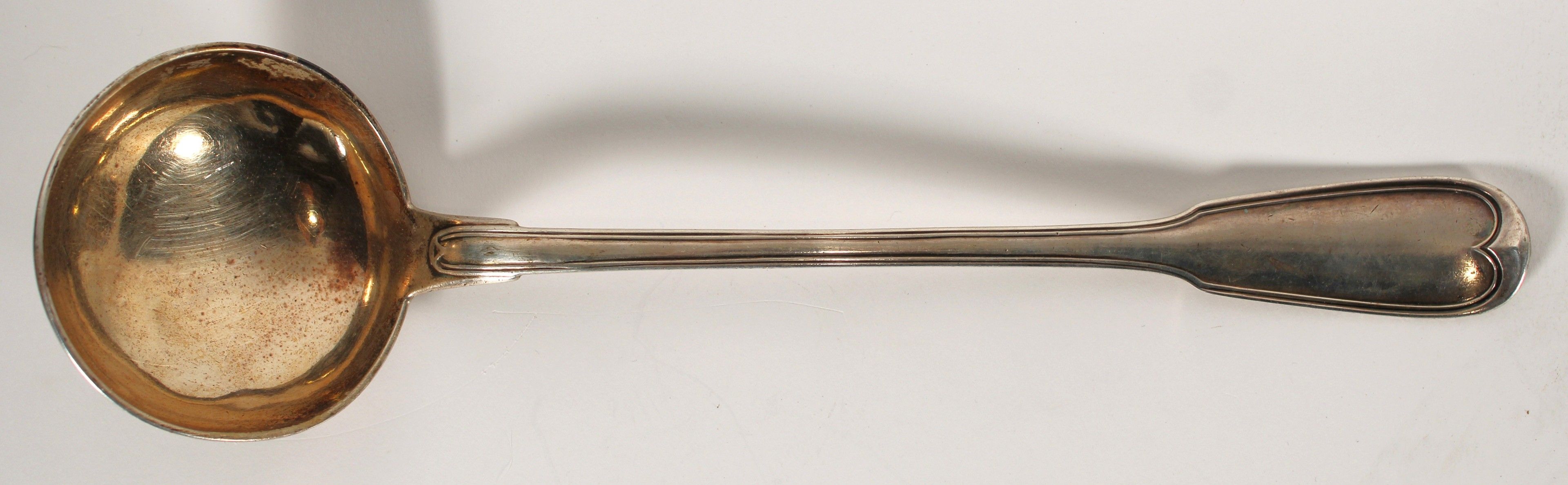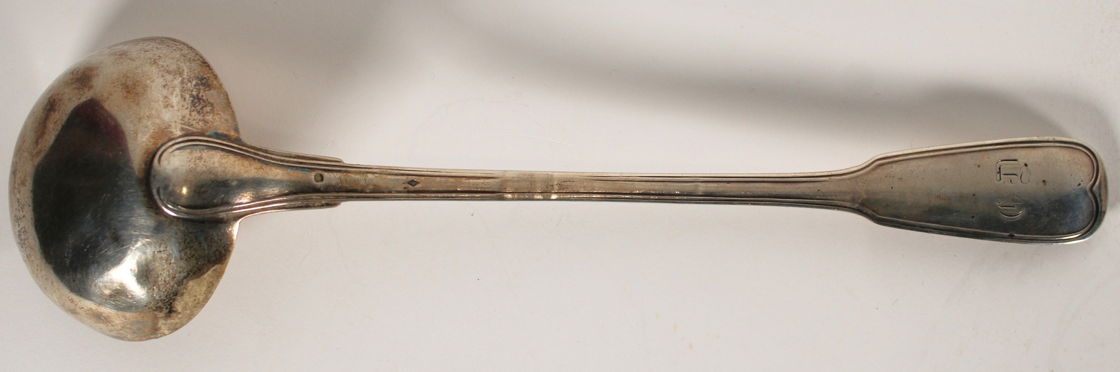 - Une louche en argent monogrammé CD. Poinçons Minerve et de maître orfèvre. (marques d'usage)