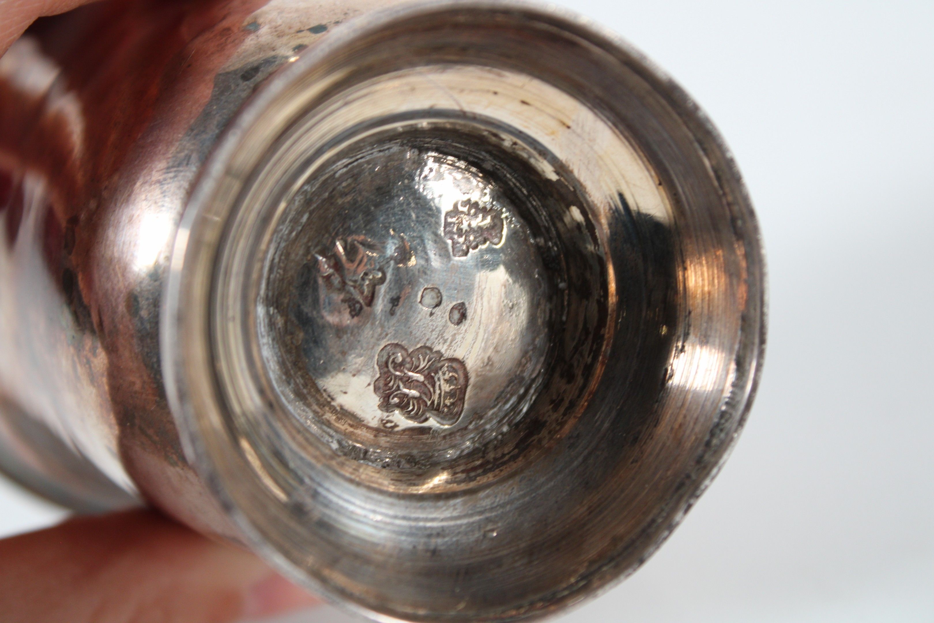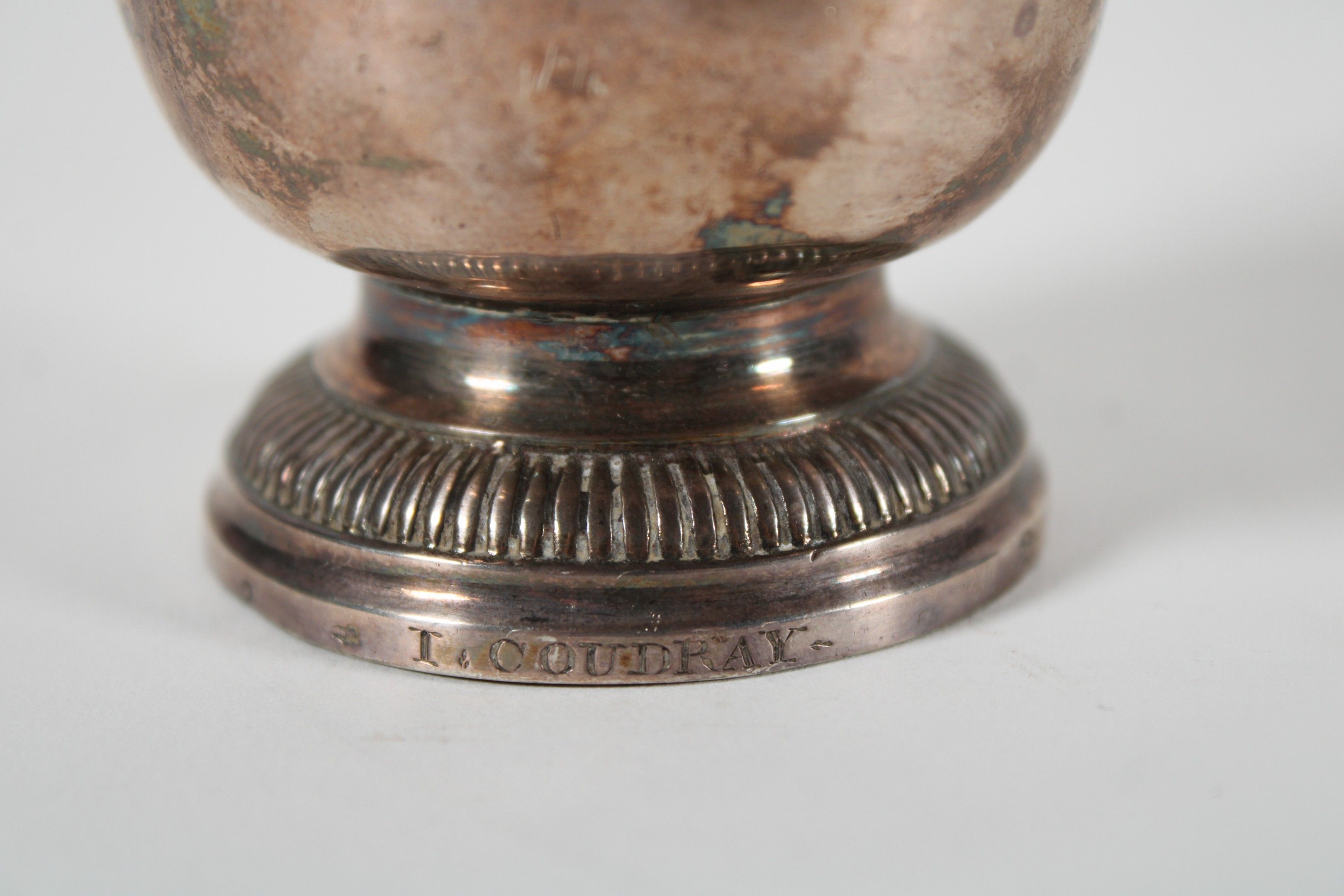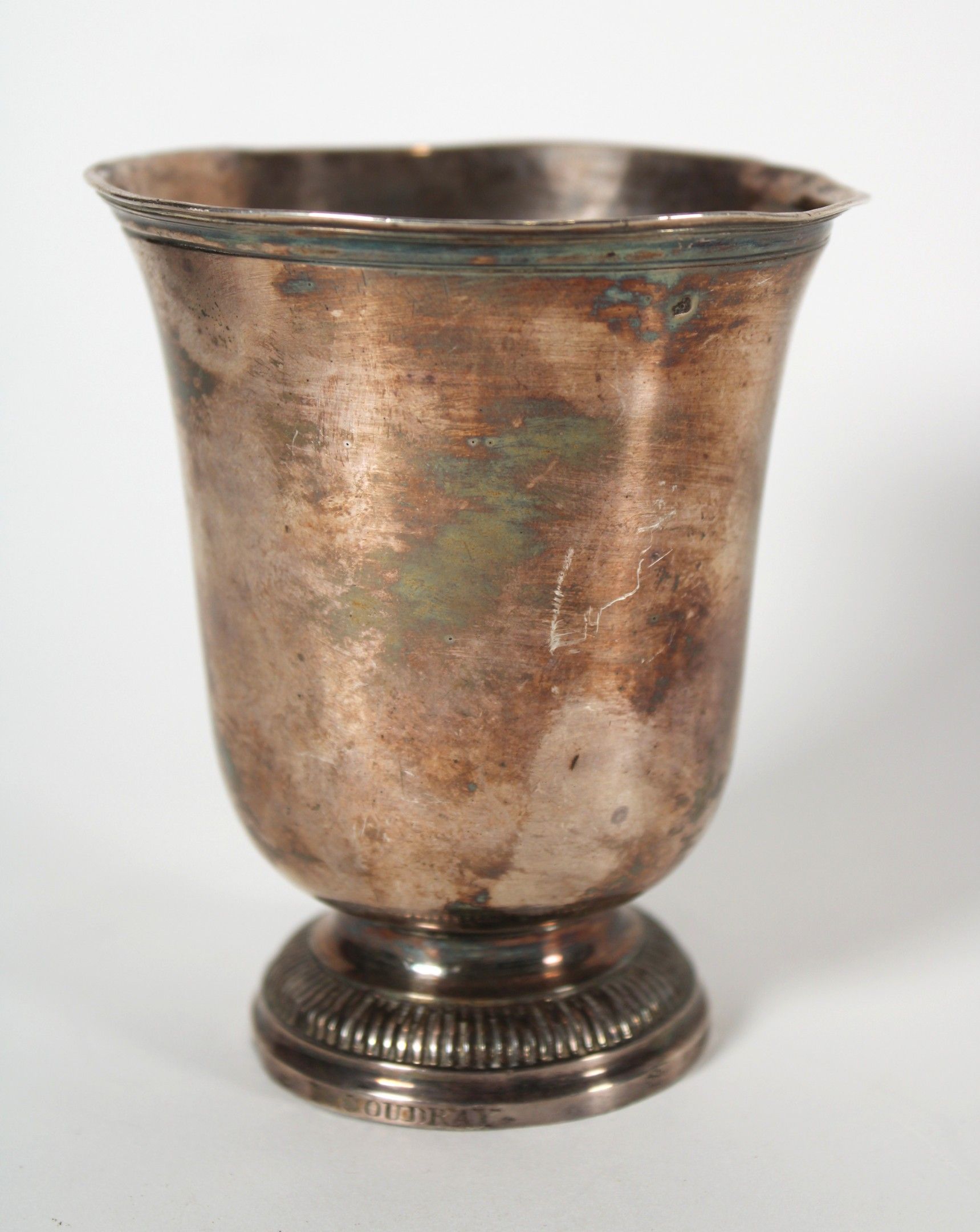 - Timbale en argent sur piédouche à décor de godrons. Inscription "I. Coudray" sur la base.