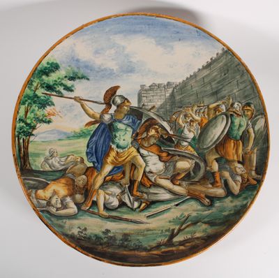 Important plat en faïence émaillée polychrome à décor d'une …