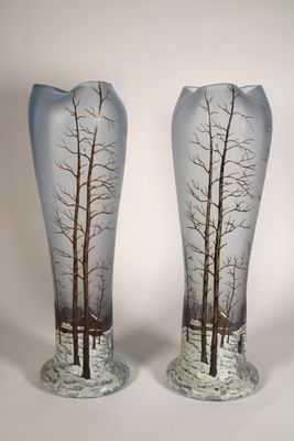 LEGRAS, attribué à Paire de vases en verre givré à décor éma…