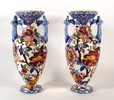 GIEN Paire de vases de forme balustre à deux anses en faïenc…