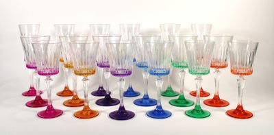 BACCARAT - KLEIN Suite de 18 verres en cristal taillé et col…