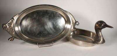 TEGHINI Firenze Plat en métal argenté à décor d'un canard. S…