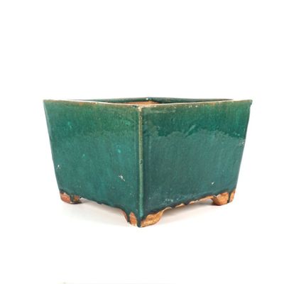 Jardinière de forme carrée en grès émaillé bleu vert, Chine,…