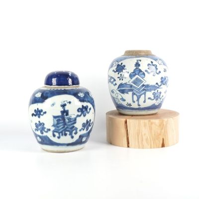 Deux pots à gingembre, en porcelaine blanche à décor en bleu…