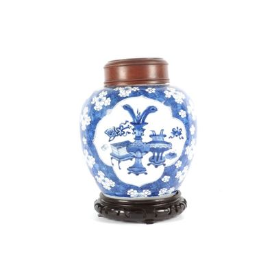 Pot à gingembre en porcelaine bleu blanc à décor en réserve …