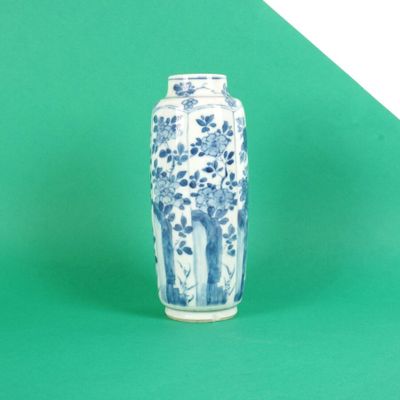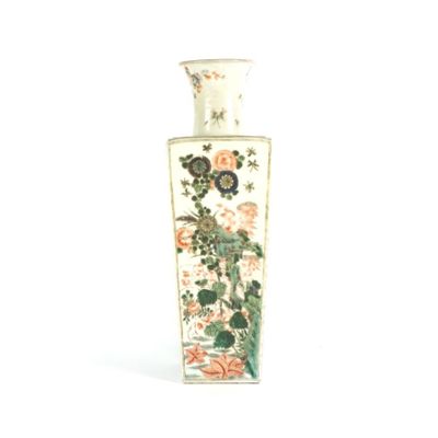 Vase quadrangulaire à pans coupés, en porcelaine et émaux de…