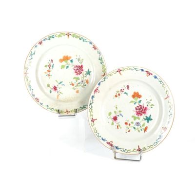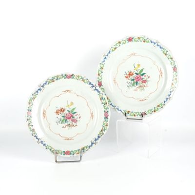 Paire d'assiettes en porcelaine et émaux de la famille rose,…
