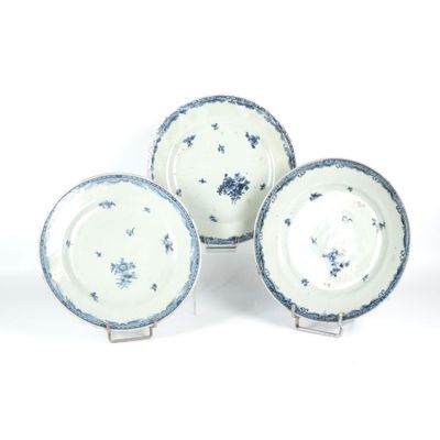 Trois assiettes en porcelaine émaillée en bleu sous couverte…
