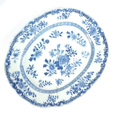 Coupe ovale, présentoir en porcelaine blanche, à décor en bl…