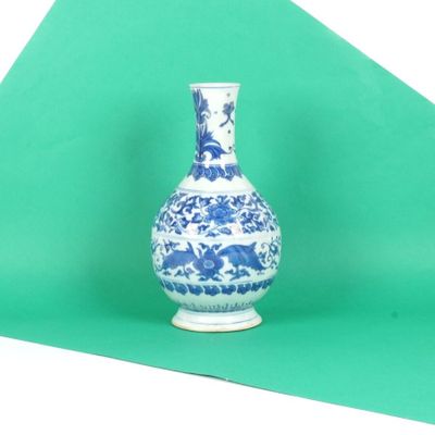 Vase en porcelaine émaillée blanche, à décor en en bleu sous…
