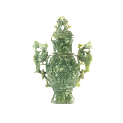 Vase couvert en serpentine, la prise du couvercle et les ans…