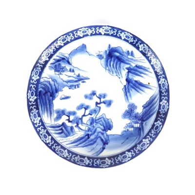 Plat en porcelaine émaillée bleu blanc à décor d'un paysage …