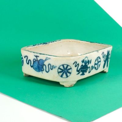 Jardinière rectangulaire, en porcelaine émaillée craquelée b…