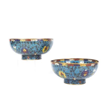Paire de coupes sur petit talon en émaux cloisonnés sur cuiv…