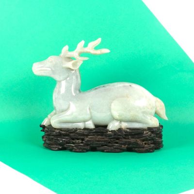 Sujet en jadéite de couleur céladon représentant un daim au …