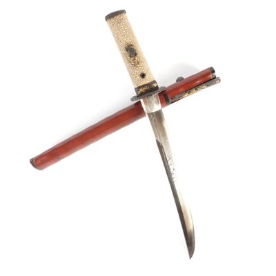 Tanto, lame en acier à décor gravé sur une face, tsuba en fe…