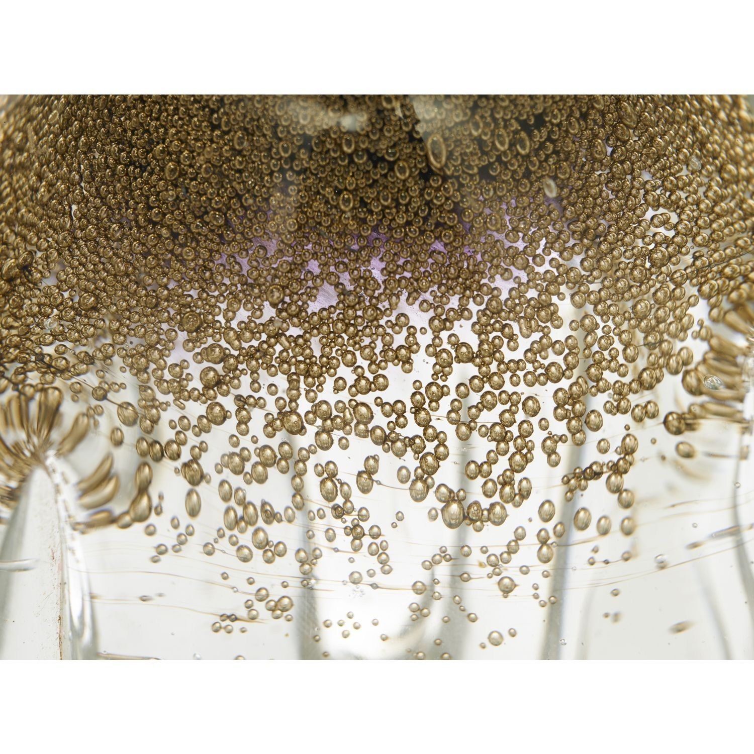 A pear-shaped bottle in thick translucent glasse with fine silver bubbles, together with its bubbled glass stopper. Signed.