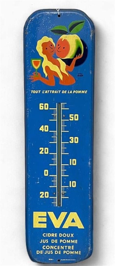 Thermomètre en émail "Eva", années 1960. 69 x 19 cm.