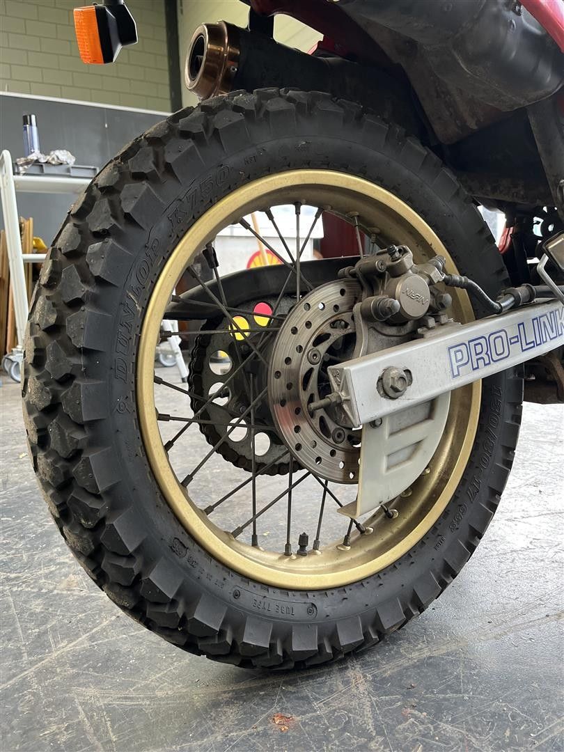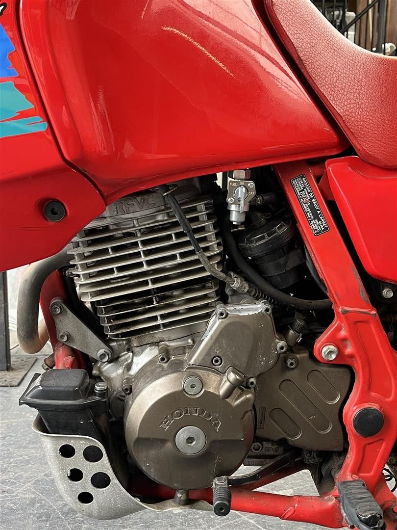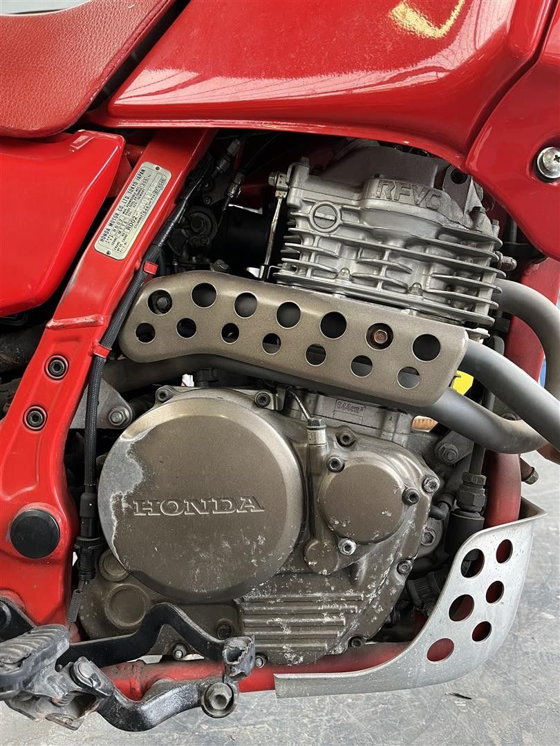Honda Dominator NX 650, 1988, quatre cylindres de 644 cm3, refroidi par air.