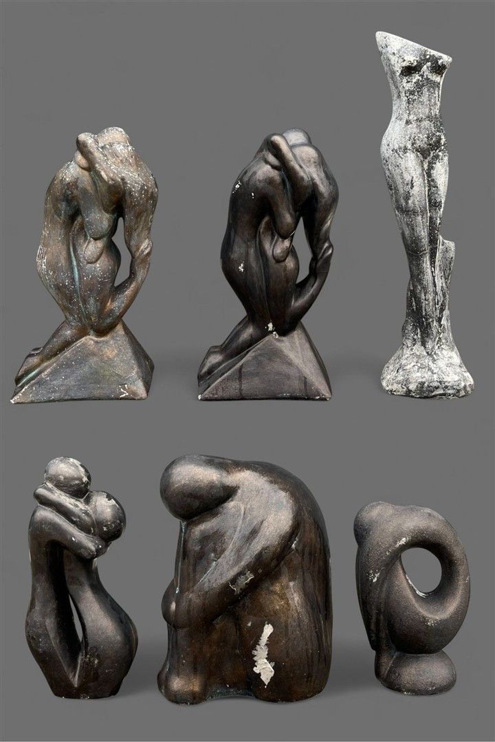 Un lot composé de 6 statues de jardin modernes. 65 x 18 x 18cm