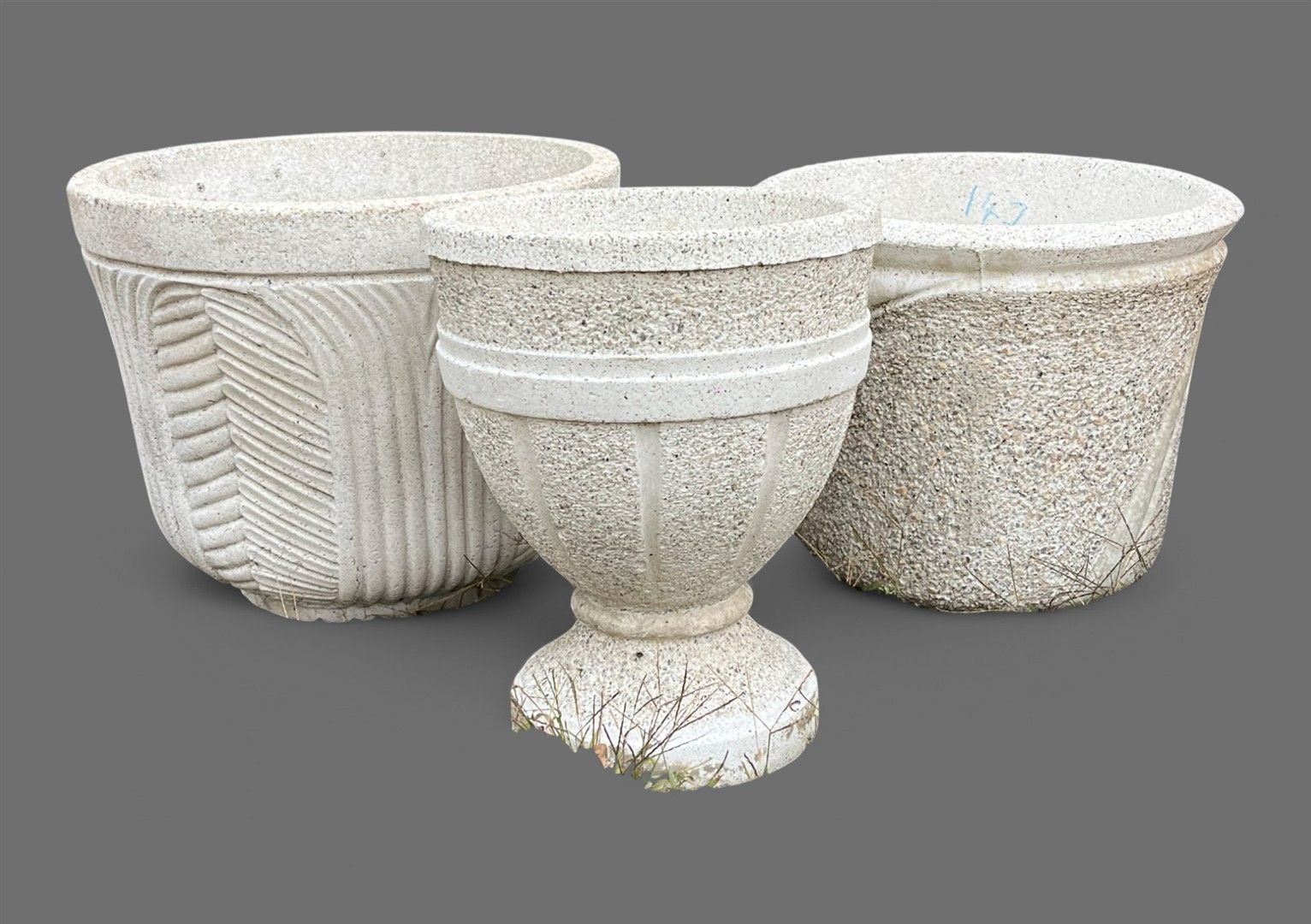 Un lot composé de (3) pots de jardin. 39 x 48 x 48 cm.
