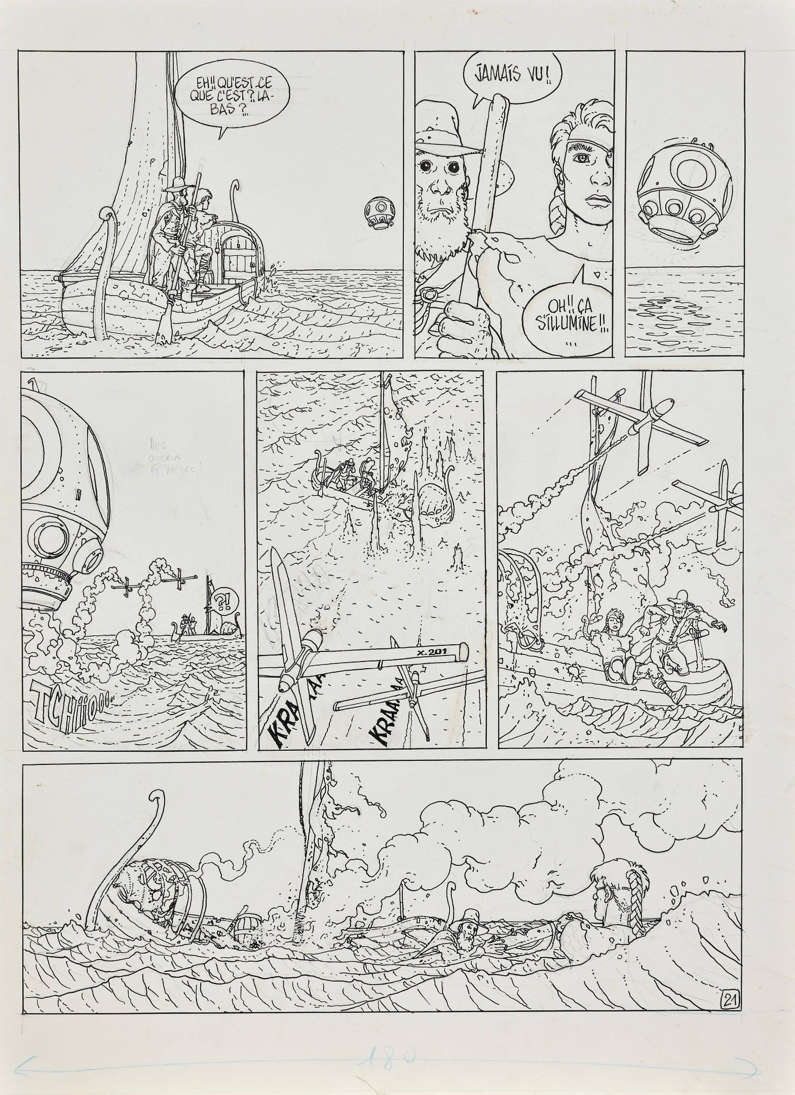 Encre de Chine sur papier pour la planche 21 de cet album publié en 1984 aux Humanoïdes Associés. Scénario d’Alexandro Jodorowsky.