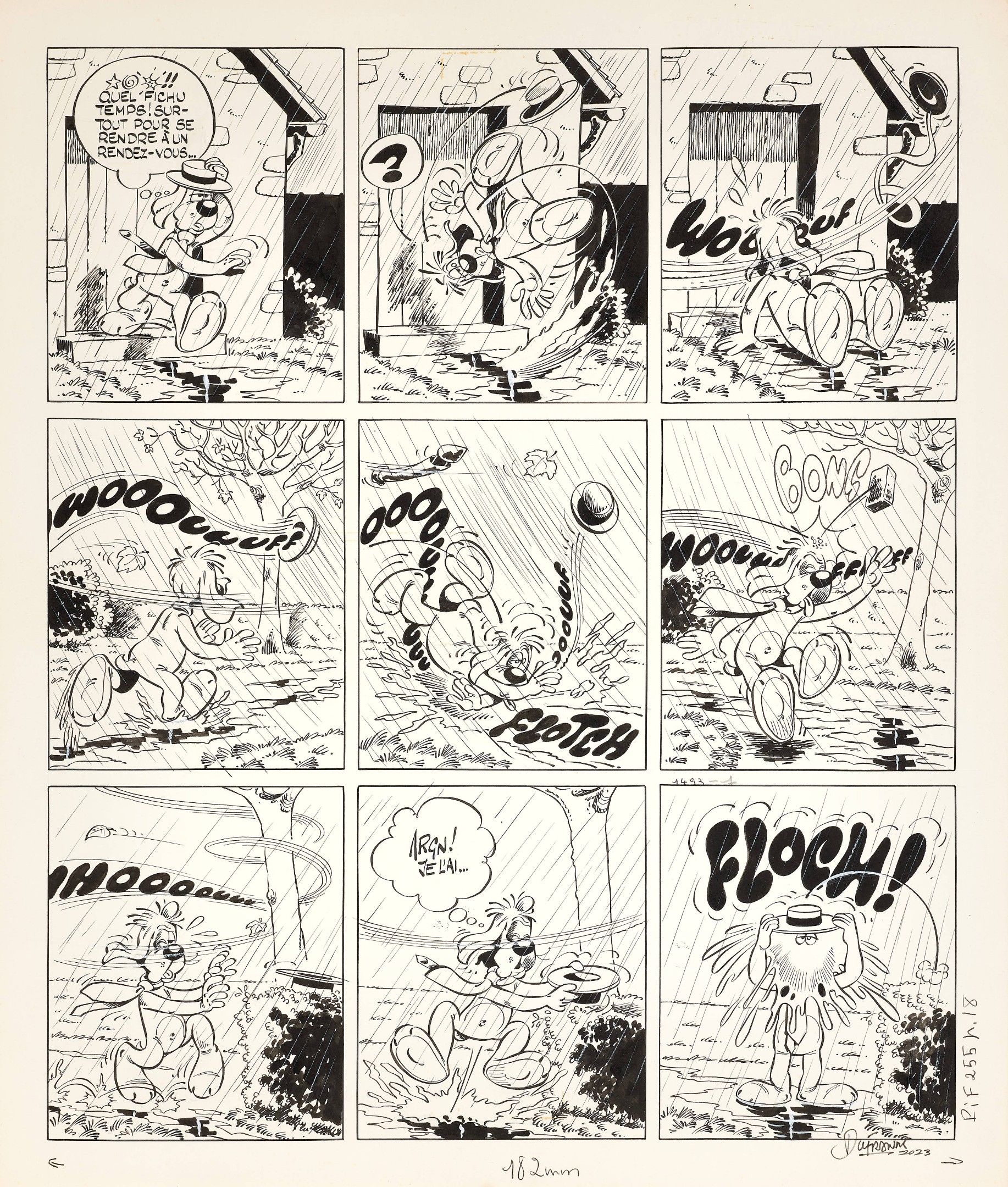Encre de Chine et gouache sur papier pour un gag publié dans Pif Gadget n°255, 14 janvier 1974. Un personnage créé par Gotlib en 1964 dans Vaillant, où il rejoint l’équipe formée par Nanar, Jujube le renard et Piette.