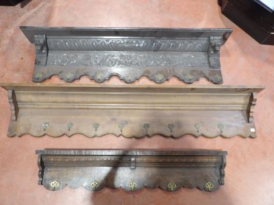 Lot de 3 potières en bois sculpté et mouluré (1x 5 patères 1…