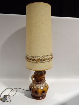 Lampe en céramique vernissée. Grand abat jour en tissu.