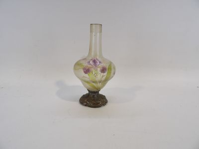 Vase soliflore en verre émaillé à décor floral, repose sur u…