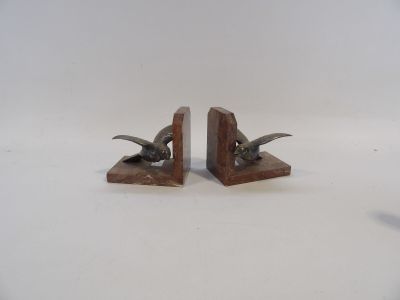 Presses- livre en marbre veiné et régule patiné à décor "aux…