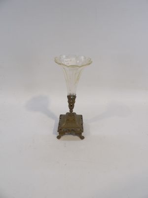 Soliflore tulipe en verre et pied en bronze patiné, Ep.