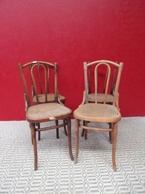 THONET, Lot de 4 chaises en bois courbé (accidents)