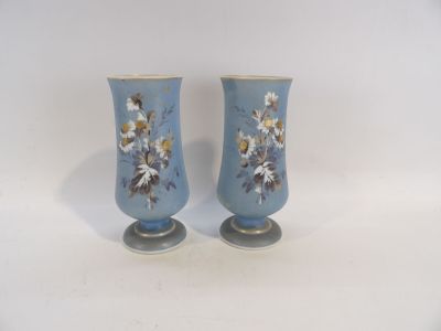 Paire de vases opaline bleu à décor émaillé, Ep.
