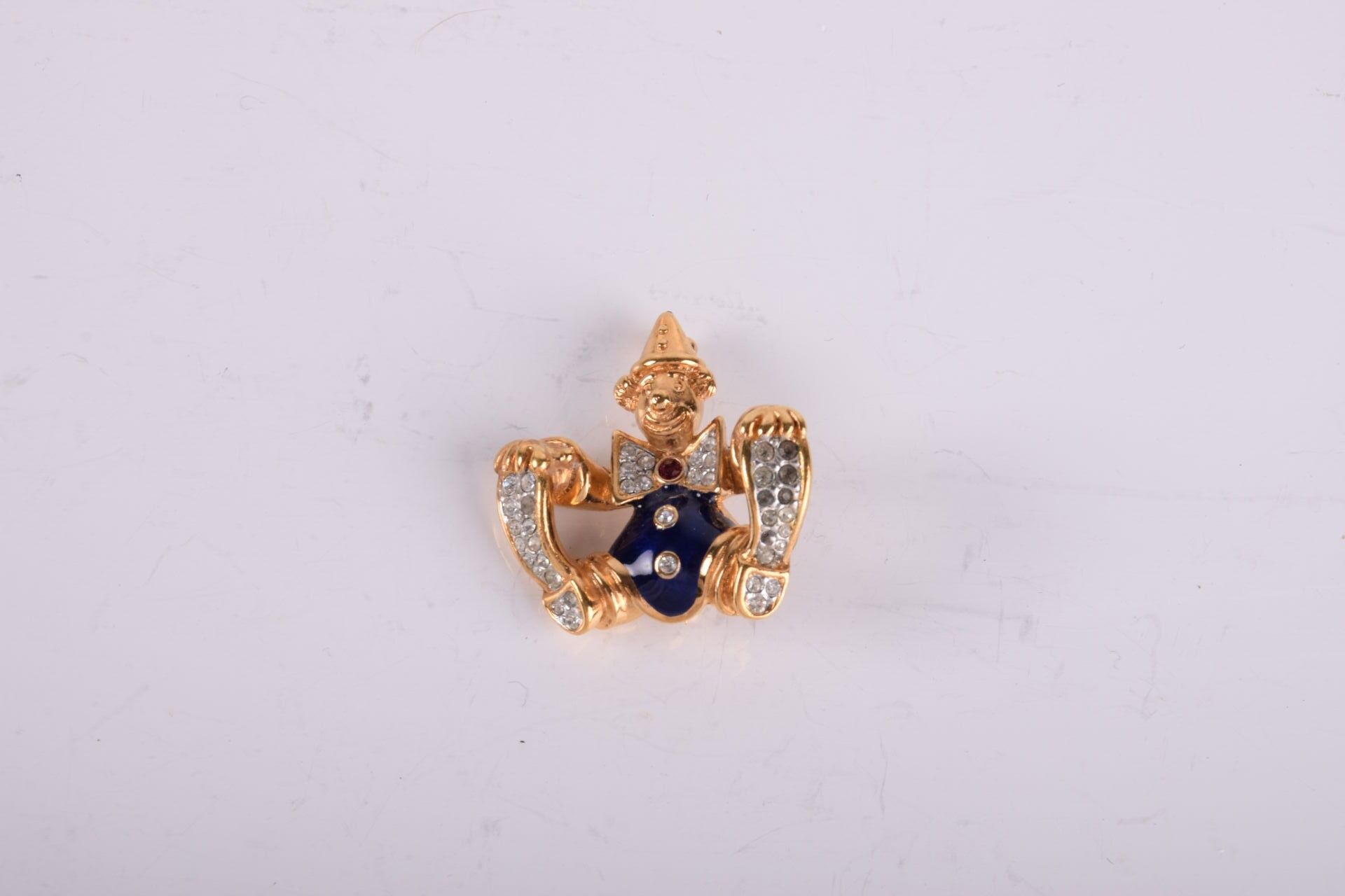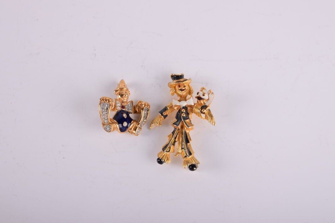2 broches en métal doré en forme de clowns