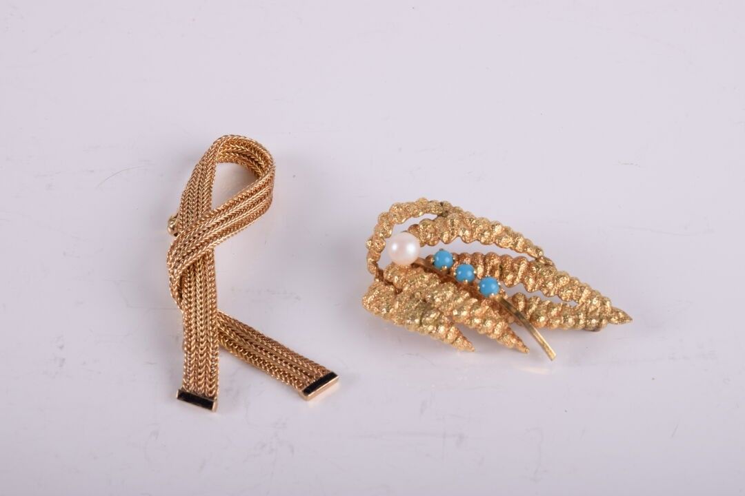 2 broches en métal doré des années 50 :