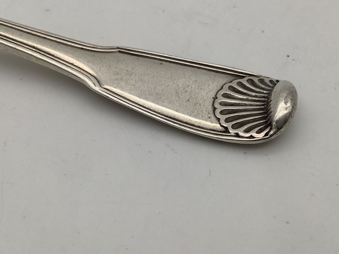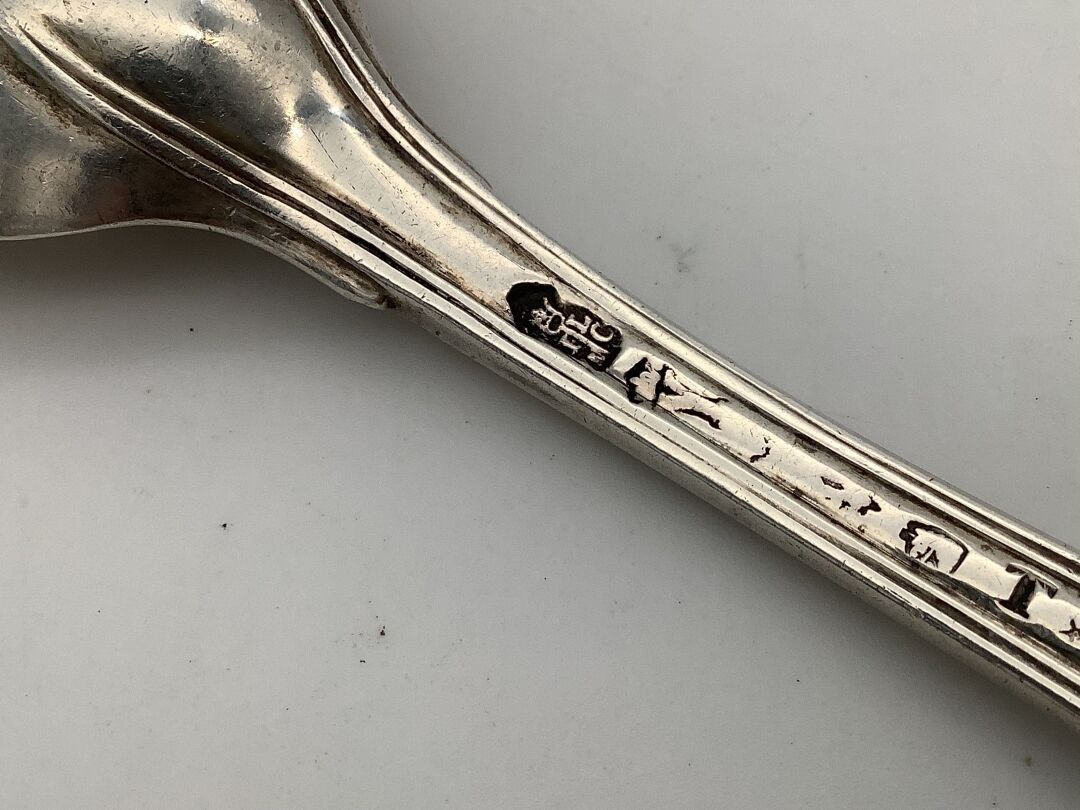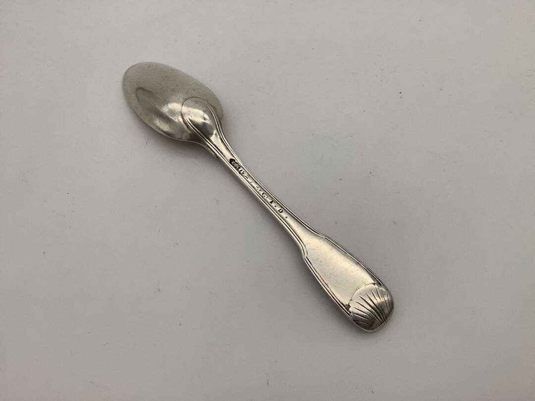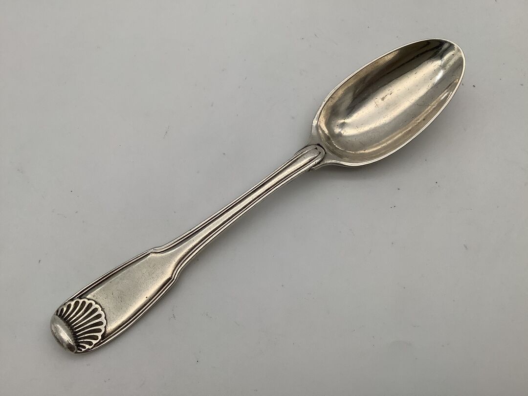 Cuillère de table en argent, modèle à filets et double coquille. Poinçons Fermiers Généraux ANJOU XVIIIème. Epoque LOUIS XV. ANGERS 1744-1745. Maître-orfèvre : Ferdinand II LACHESE reçu en 1728. Poids : 81g