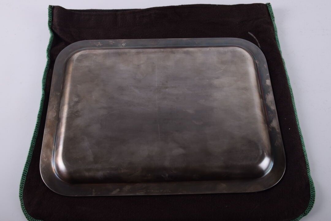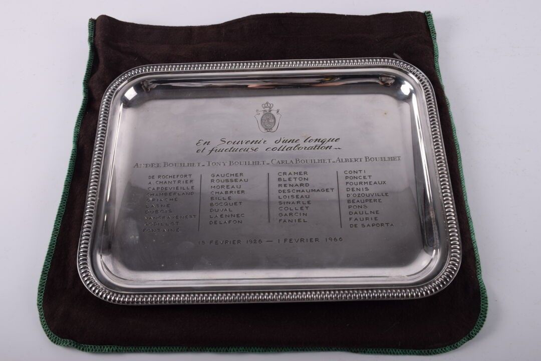 CHRISTOFLE. Petit plateau « en souvenirs d'une longue et fructueuse collaboration » en métal argenté