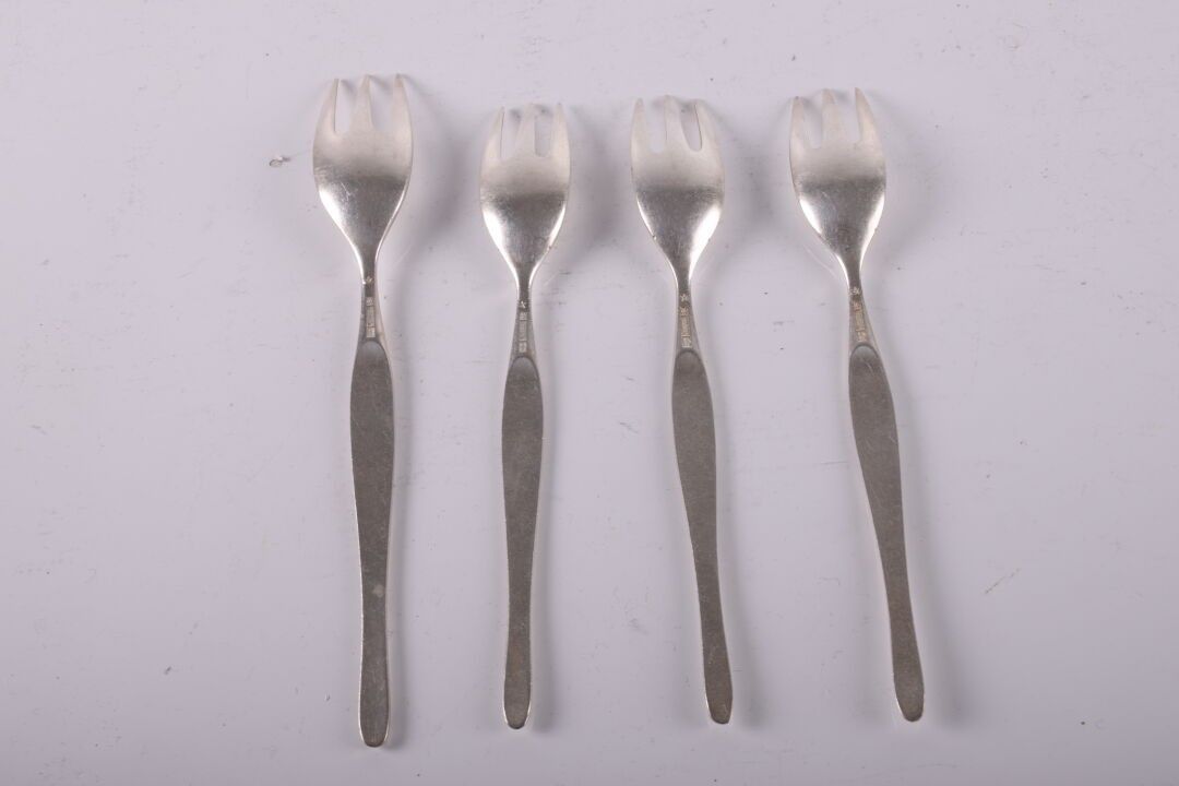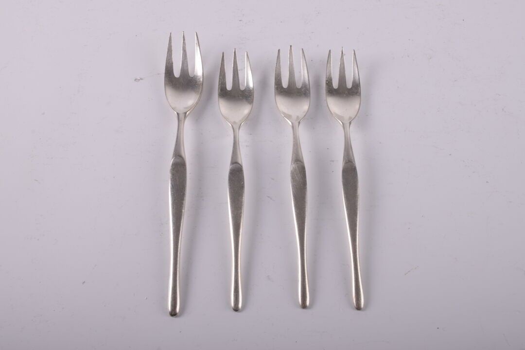 CHRISTOFLE. 4 fourchettes (dont une plus grande) en métal ar…