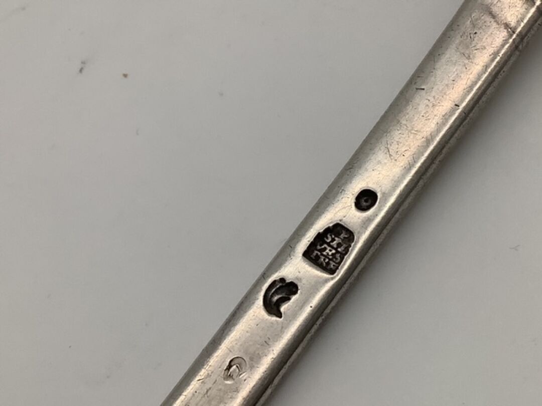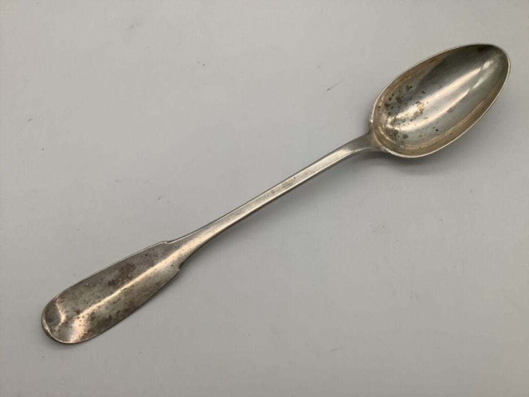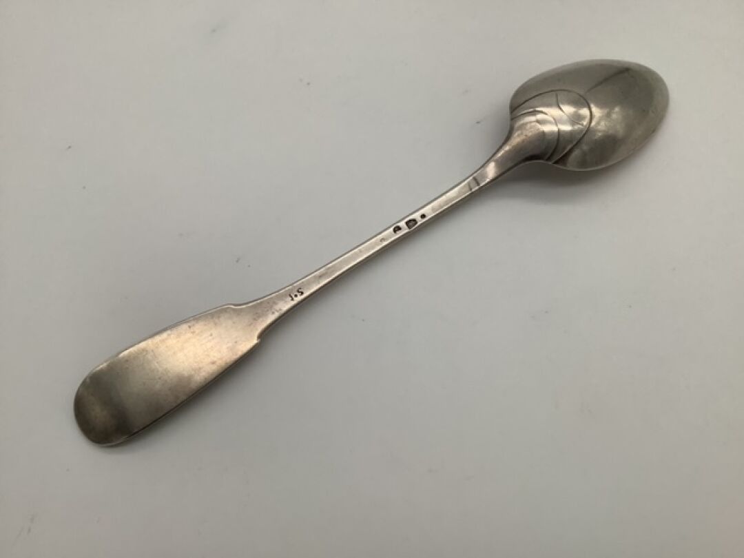 Cuillère à ragoût en argent, modèle uniplat. Poinçons Fermiers Généraux LANGUEDOC XVIIIème. NARBONNE vers 1775. Maître-orfèvre : Pierre SILVESTRE reçu en 1773. Longueur 31,5cm. Poids : 155g