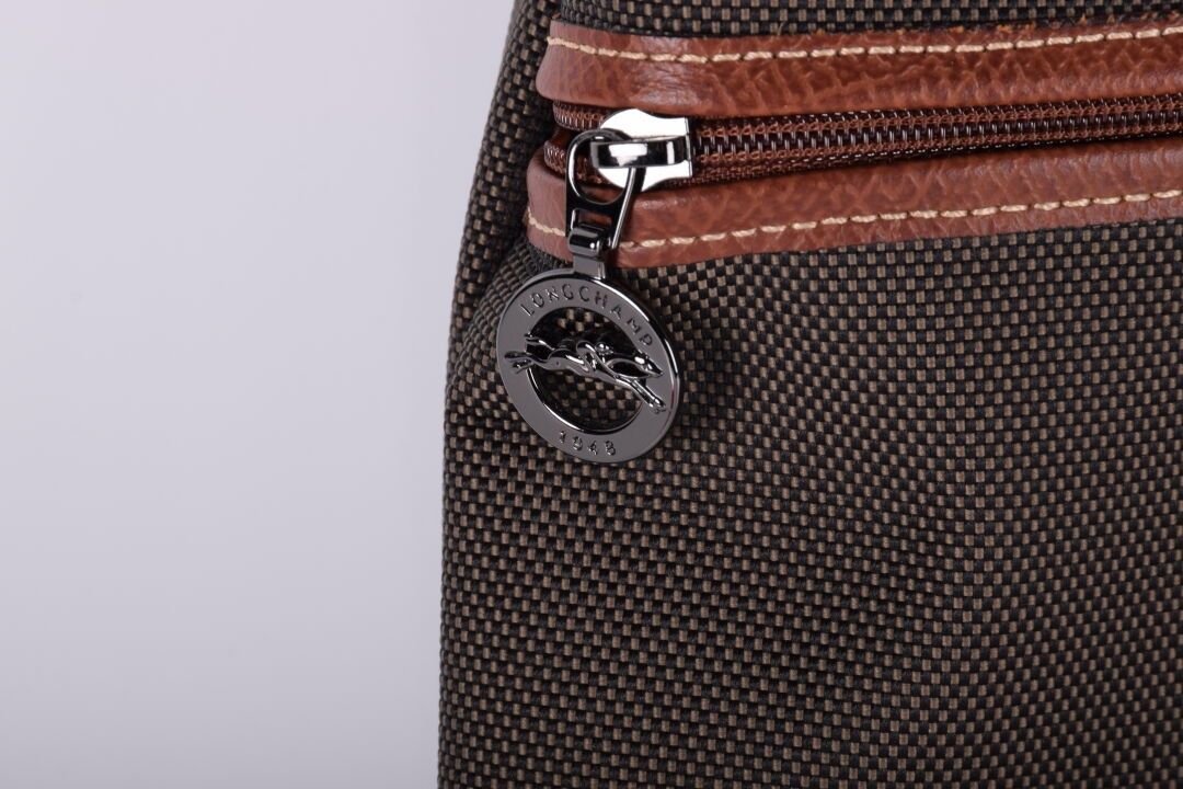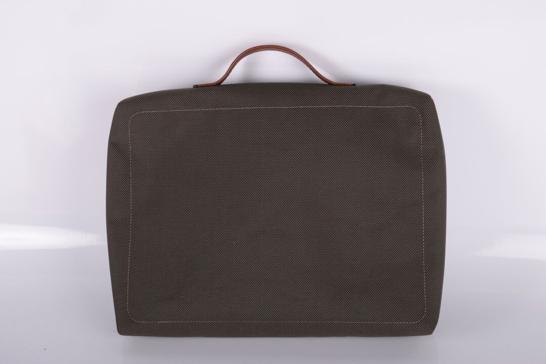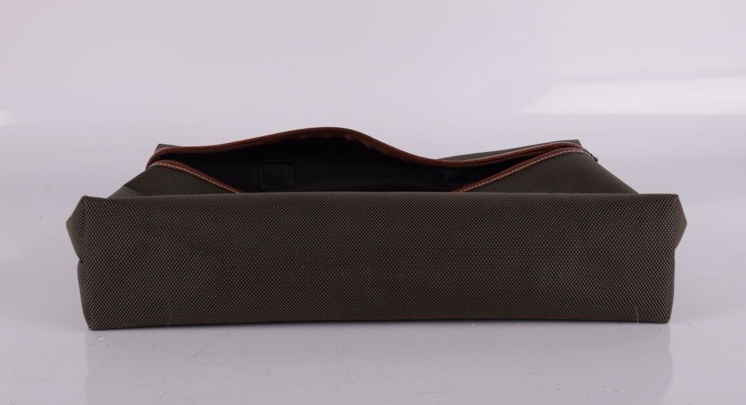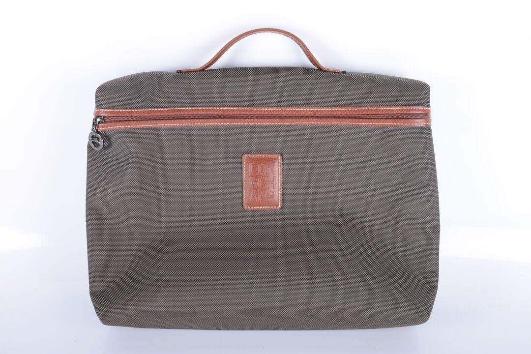 LONGCHAMP Porte documents modèle Boxford en toile kaki et cuir de vachette marron