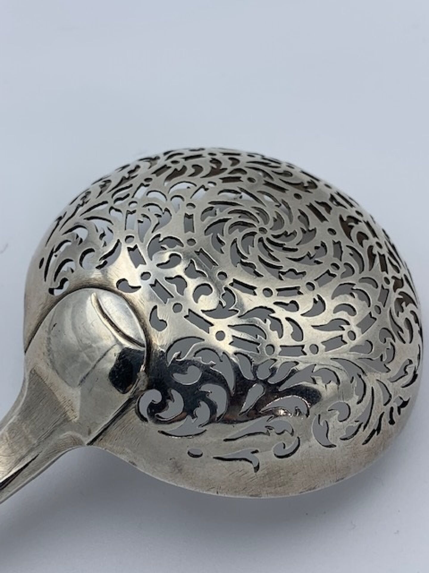 Cuillère à saupoudrer en argent, modèle uniplat. Poinçons Fermiers Généraux XVIIIème. 1758. Maître-orfèvre : Pierre LECLERC reçu en 1748. Poids : 100g