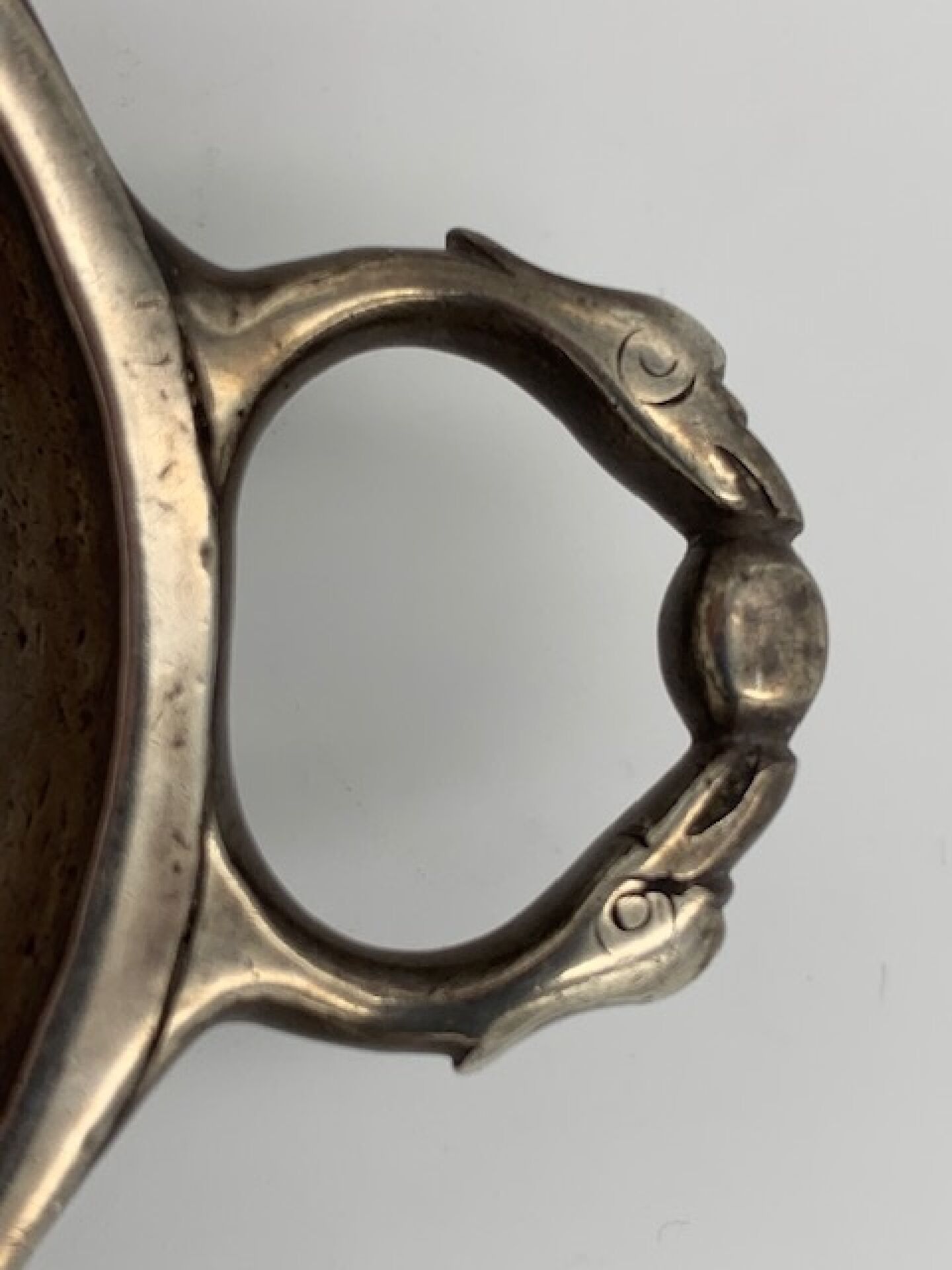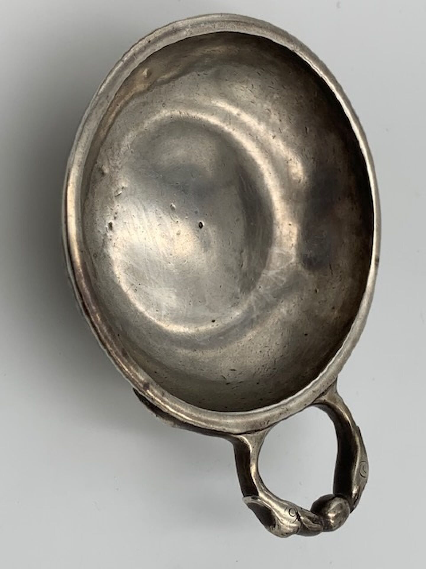 Tastevin en argent uni, modèle à anse à double têtes affront…