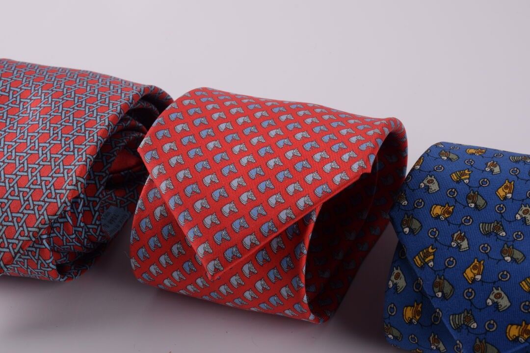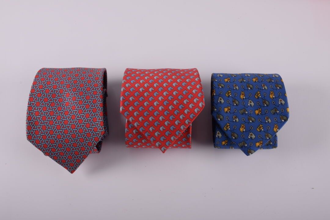 HERMES Paris 3 cravates en soie à motifs colorés