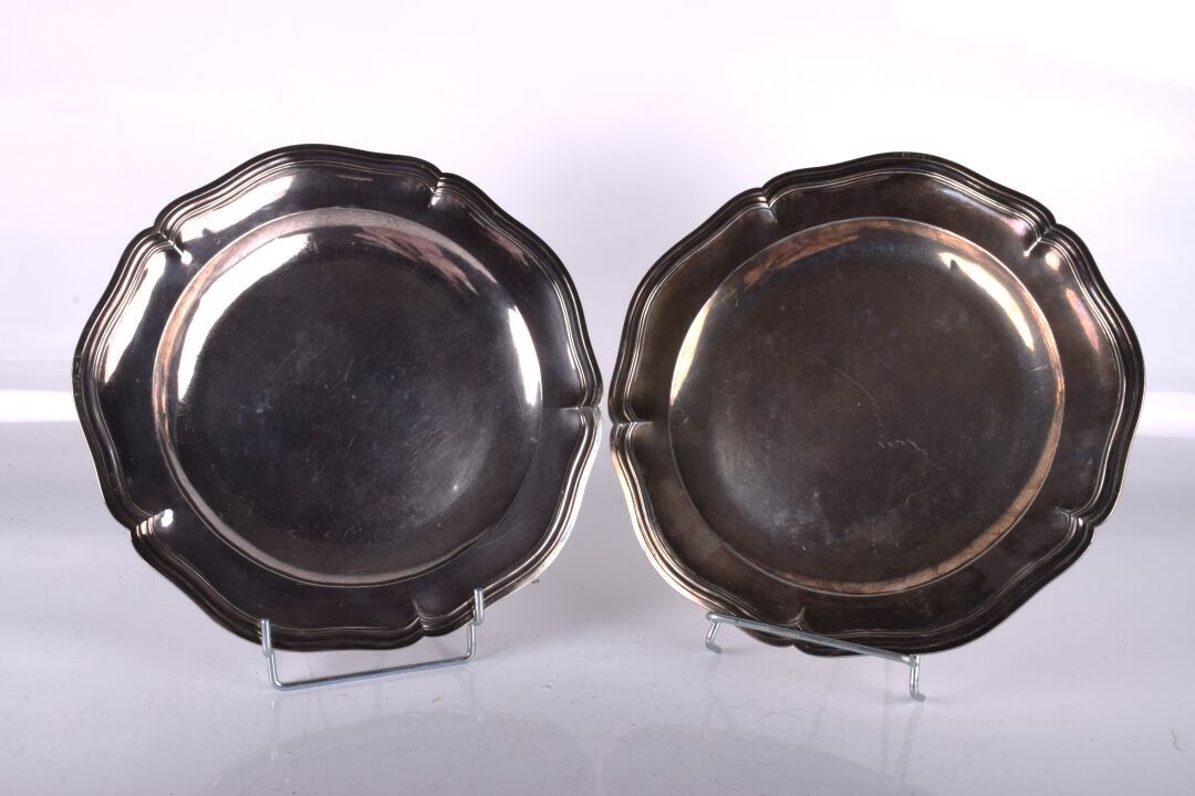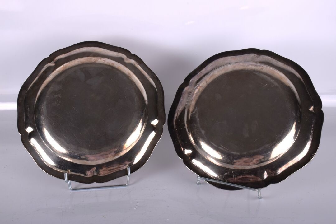 Paire de plats en argent, à contours.